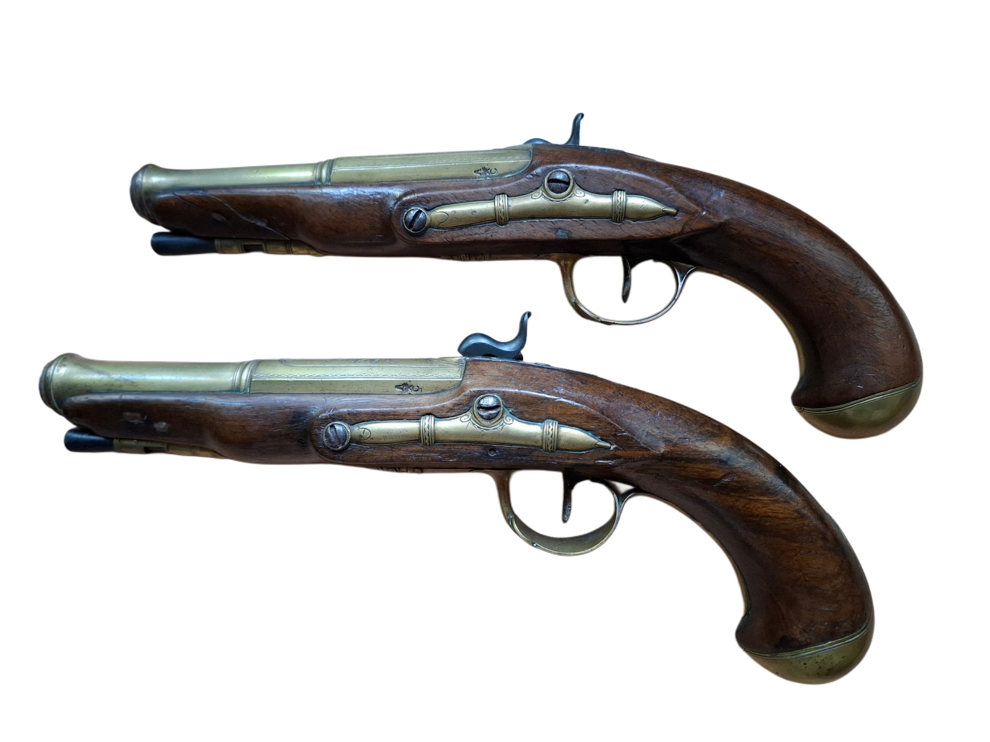 Pair Of French Navy Percussion Pistols, Aubron A Nantes.